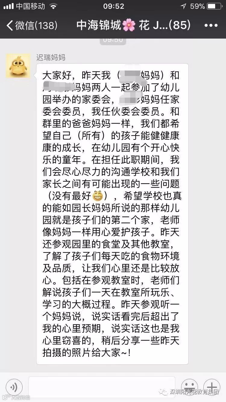 会后家委的深切感受,再次感谢家长朋友对阳光花中海锦城幼儿园的大力支持,愿你的明天更加精彩!