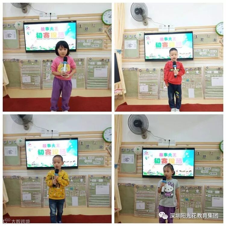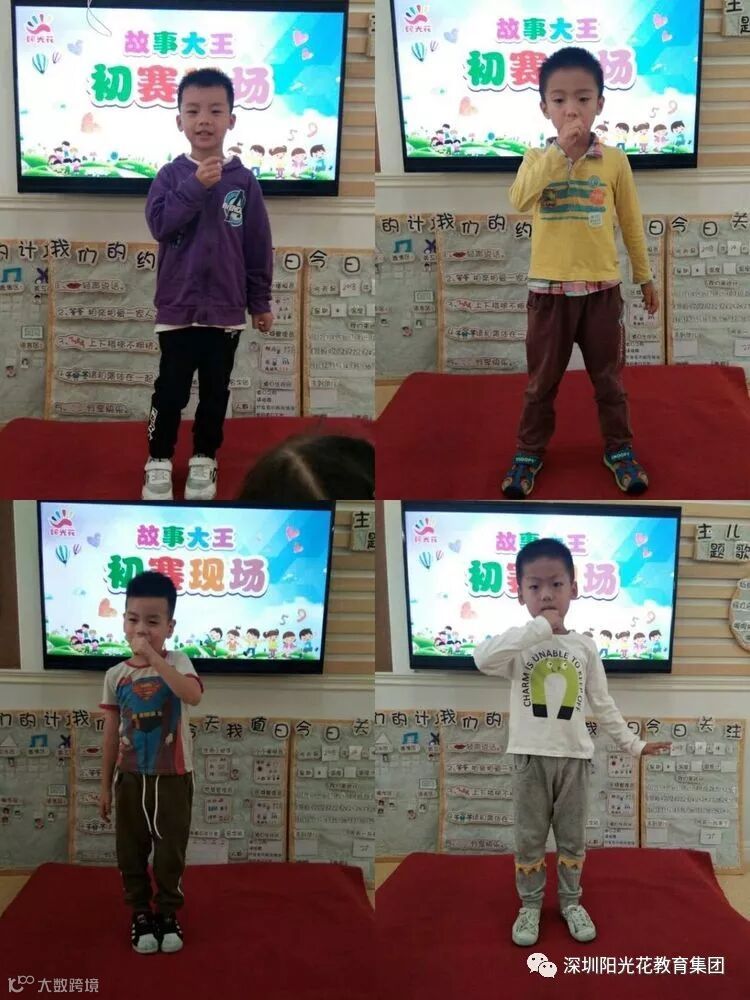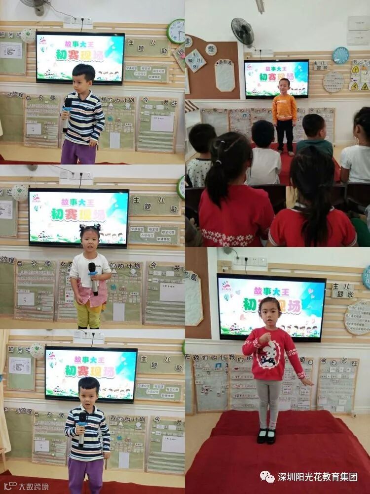 幼儿期是孩子语言发展的关键期。《纲要》在语言领域也强调“发展幼儿语言关键是创设一个能使他们想说、敢说、喜欢说、有机会说的环境。”讲故事,能使幼儿的语言表达能力、口语发展能力得到进一步提高,锻炼、丰富幼儿的词汇、句子,有利于幼儿综合素质的健全与发展,更重要的是锻炼幼儿的胆量,培养幼儿自信与勇气。园所特举行故事大王比赛,为幼儿营造一个学说话、敢说话、会说话、勇于表达的语言氛围,为幼儿提供一个展现自我的舞台,提高幼儿的综合素质。下面是我们《故事大王》的初赛现场: