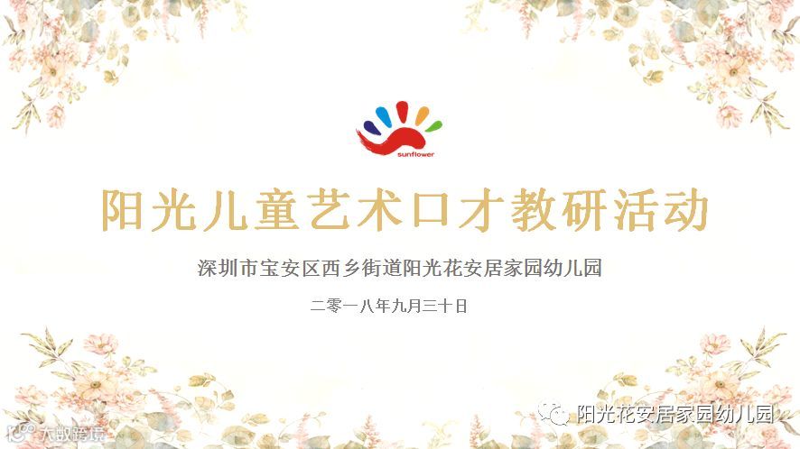 艺术口才是我园的园本特色课程,为了提高教师的教育教学水平,促进教师的专业化快速成长以便更扎实有效地开展幼儿园教学活动。2018年9月30日,阳光花教育集团鞠艳园长、王赟部长、李建惠园长莅临阳光花安居家园幼儿园进行艺术口才教研活动。