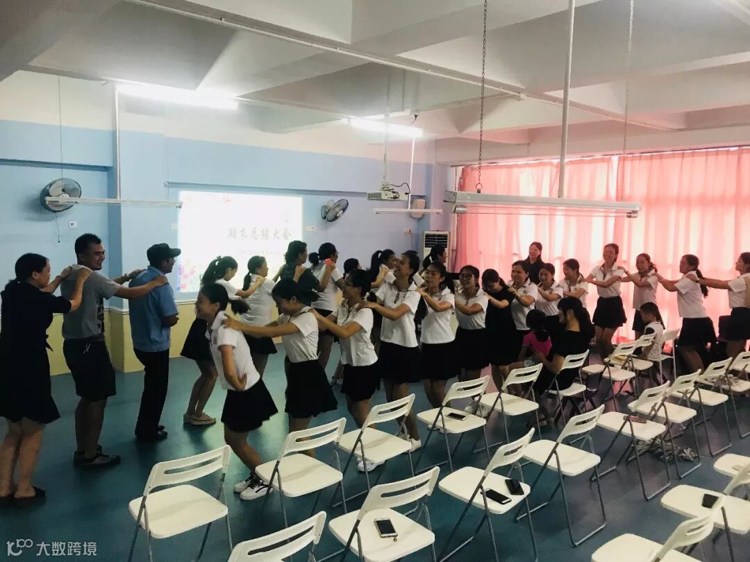 总结大会在老师们活力四射的舞蹈中拉开序幕,在动感的音乐声中,会场马上沸腾起来了,大家一起动起来吧!