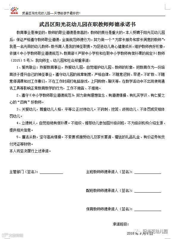 阳光花幼儿园全体教师师德学习: