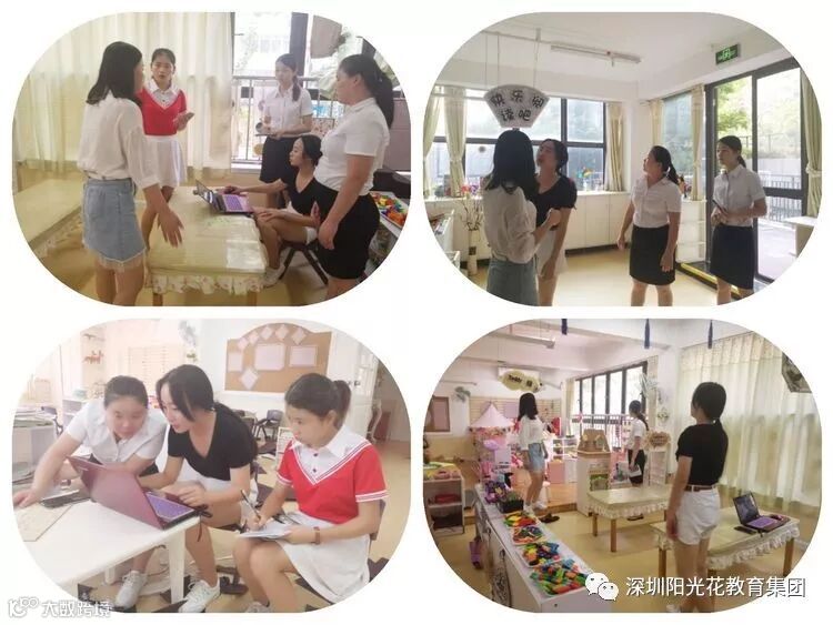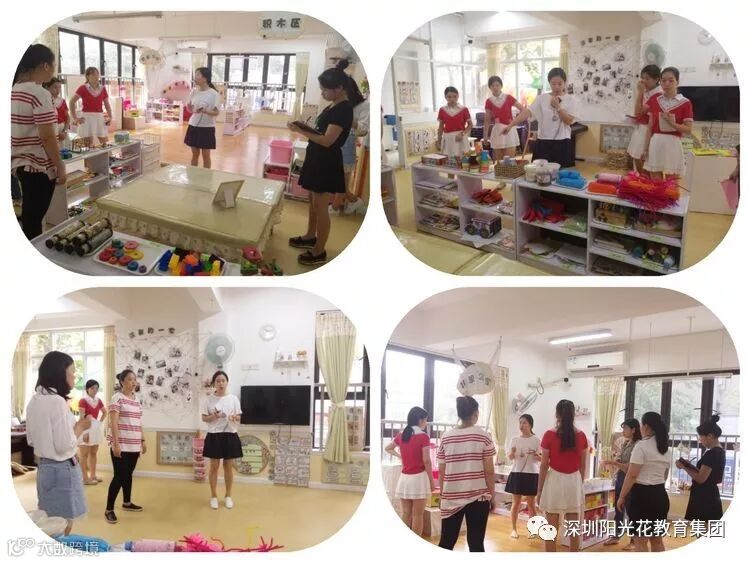 在阳光花集团鞠艳园长、李建惠园长、安居家园杜庆玲园长、张小娜园长、詹惠琳主任、苏晓玲老师及我园行政人员的陪同下,朱文静老师为我园小、中、大班精心设计了五大区域环境的划分。划分后的区域环境和划分前的区域环境有了明显的对比。同时朱文静老师也认真的讲解了区域划分得当对孩子的重要性。