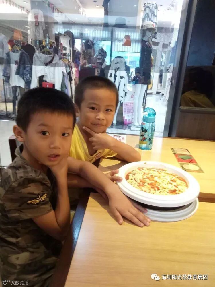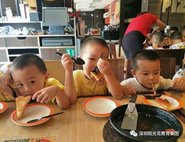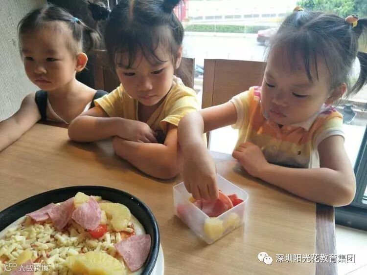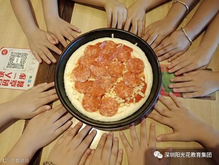 孩子们吃着自己亲手制作的披萨,开心极了!
