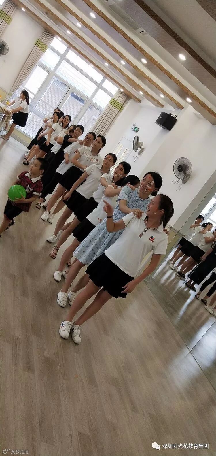 踩气球环节,老师们的团结精神超强,为了自己的队伍一直坚持奋斗着……