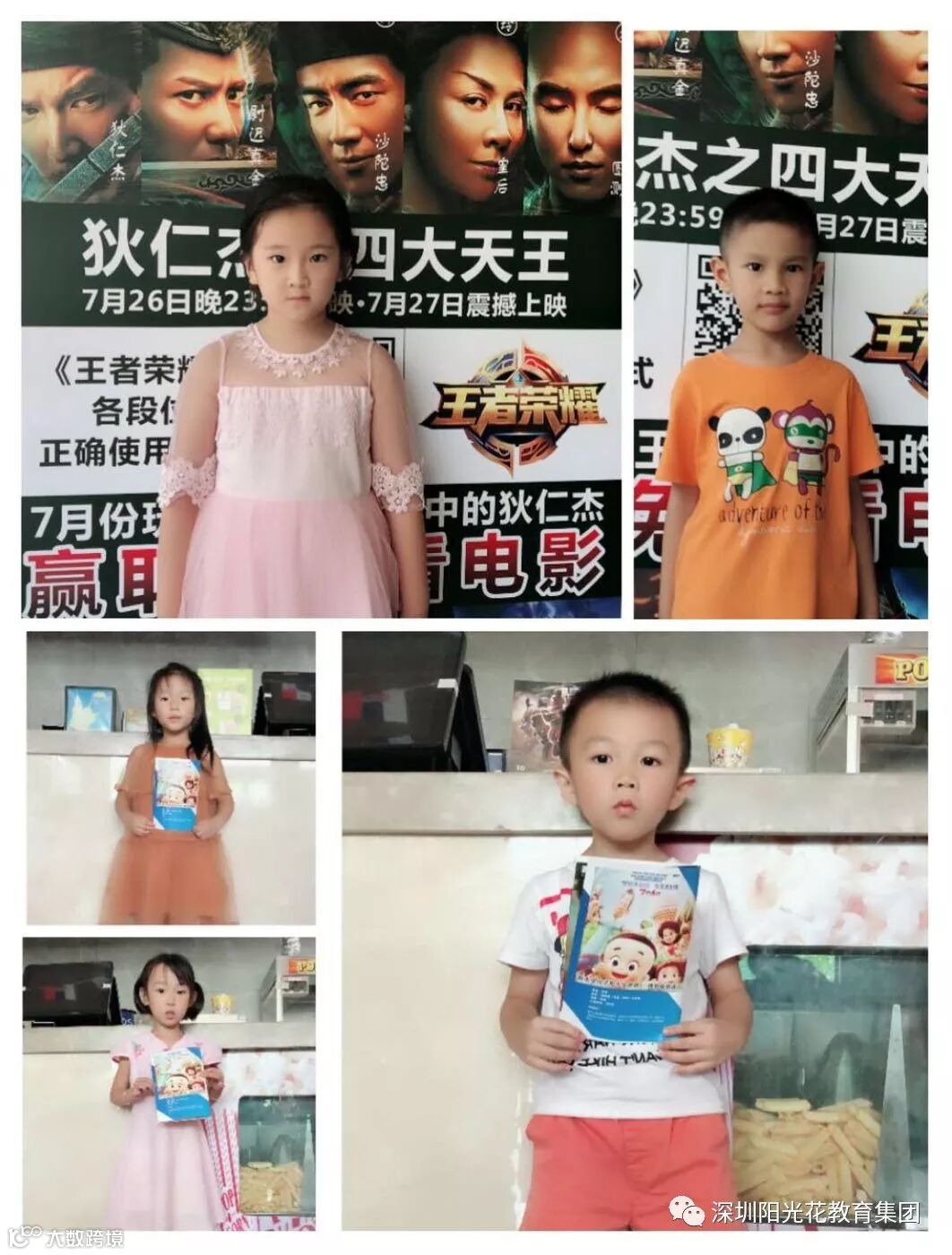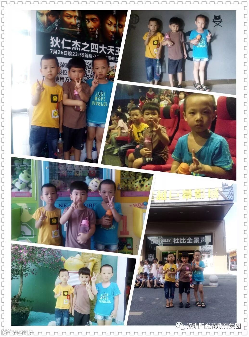 2018年7月10日上午红太阳幼儿园组织了7、8月的集体生日会,观看《新大头儿子和小头爸爸》的电影。