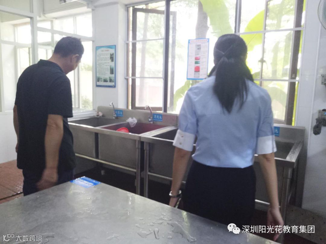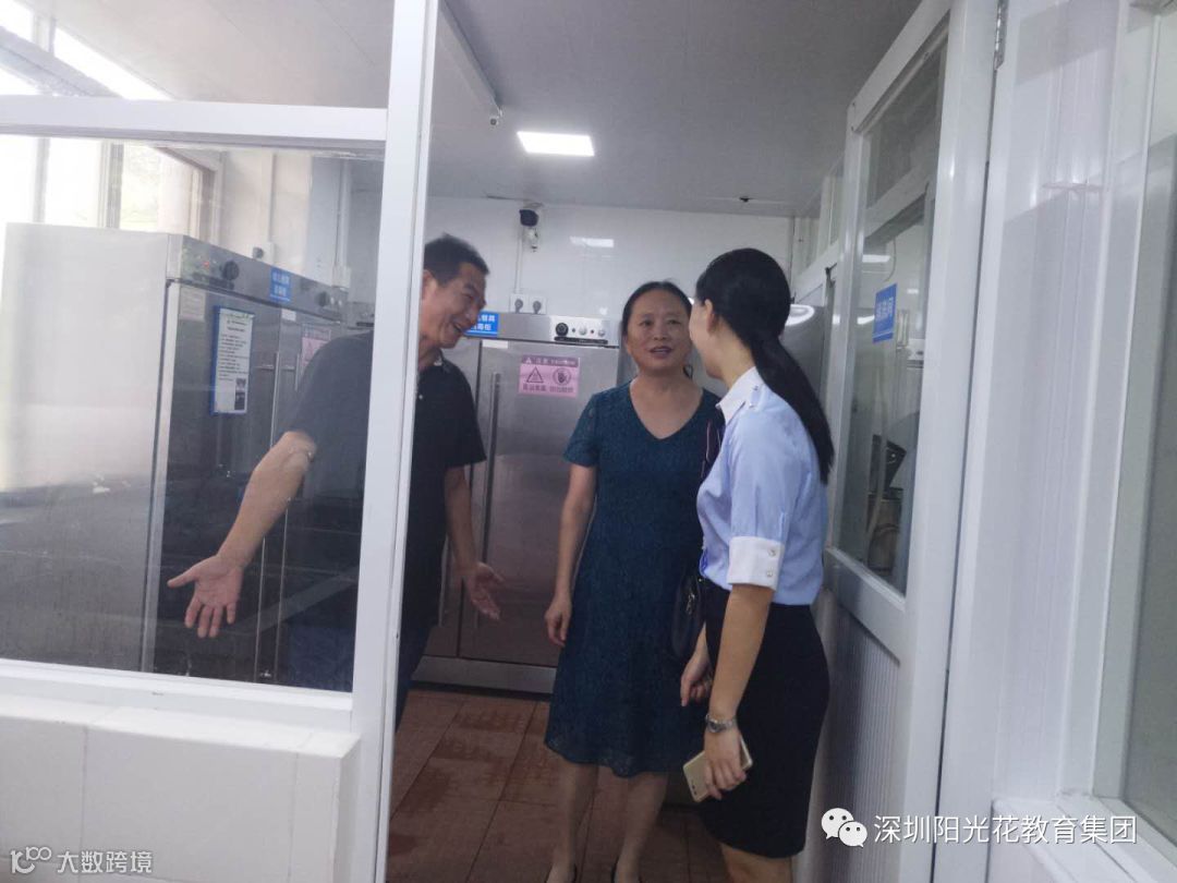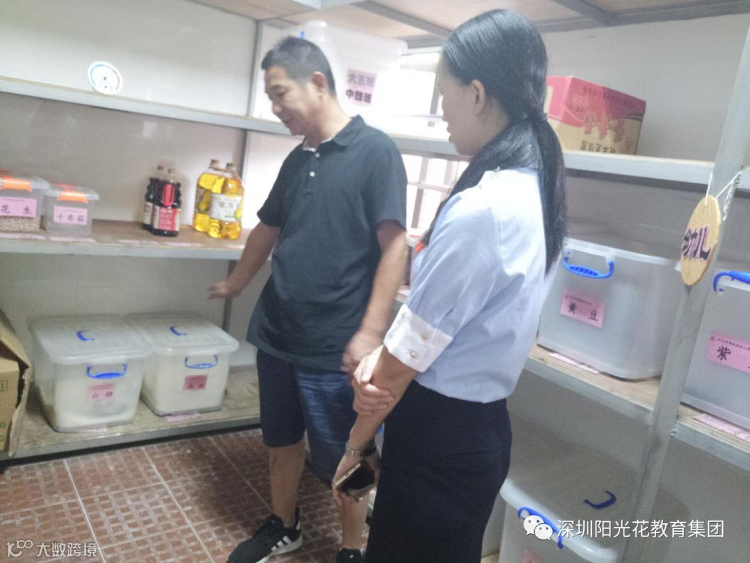 在陈园长及全体行政人员的陪同下,宁总监和杨园长查看了食堂的环境卫生、安全及库房的物品整理及摆放。