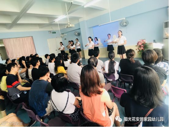 活泼可爱的老师们特地为本次家教报告会进行编排了艺术口才展示表演,让新生家长更进一步了解园本课程——阳光儿童艺术口才。生动有趣的情景表演,获得了阵阵掌声!