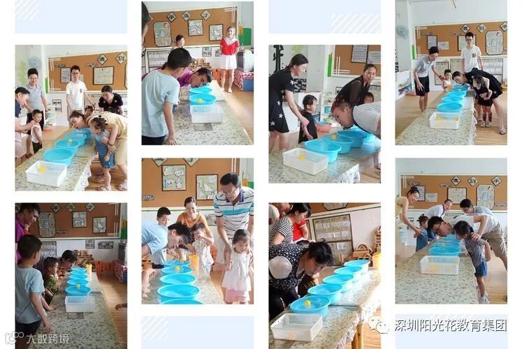 活动分为四个环节: 1.参观班级环境;2.班级老师致欢迎词、介绍班级老师及开学前需要家长配合工作;3.手工制作亲子课堂; 4.游戏大闯关:设置了室内、户外8个游戏区。