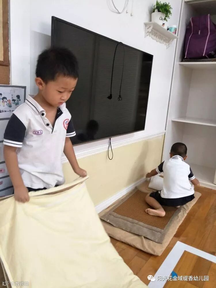 本次活动分为三个主题进行,中一班和中四班是叠被子比赛,中二班和中三班是我来帮忙打扫幼儿园,中五班和中六班是我来帮你垫汗巾。