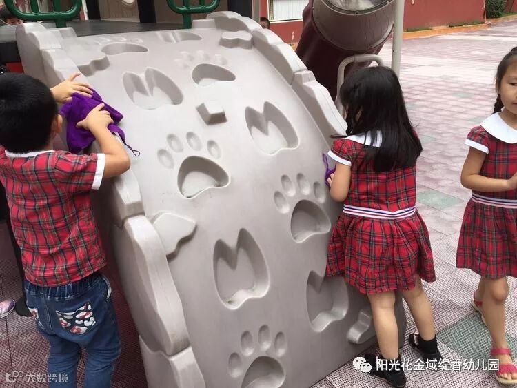我们要帮助老师擦大型玩具擦的干干净净的。