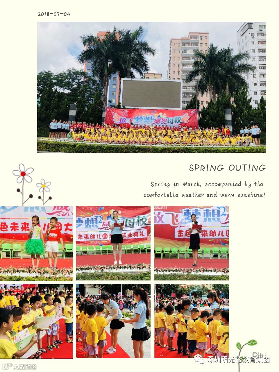 2018年7月4日,在这鲜花朵朵,星光闪烁,璀璨着小朋友们张张笑脸的七月,金色未来幼儿园迎来了大班泡沫嘉年华暨毕业典礼活动,花儿在开放,鸟儿在歌唱,这一切都在为我们“大班小朋友”喝彩!他们像在表达最诚挚的祝福, 倾诉着对老师、对幼儿园无尽的不舍与留恋。此时此刻我们的心情无比激动,因为,孩子们长大了就要毕业升入小学,即将成为一名小学生, 在知识的海洋中自由翱翔。今天,爸爸妈妈和我们一起来见证这激动人心的一刻, 让我们共同欢呼,祝贺大班宝贝光荣毕业!