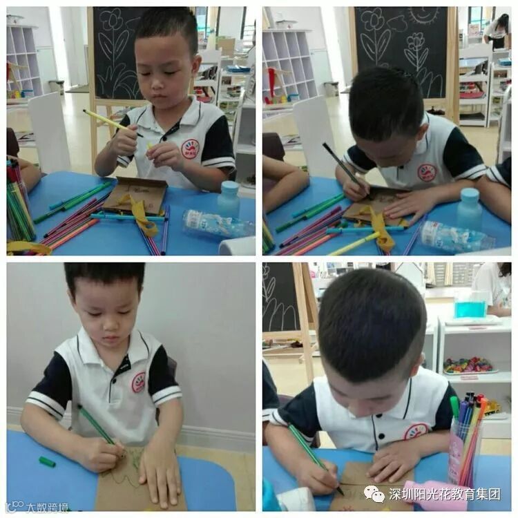 看,我们画的多认真和多漂亮啊,希望等一下叔叔阿姨收到我们的礼物喜欢哦!
