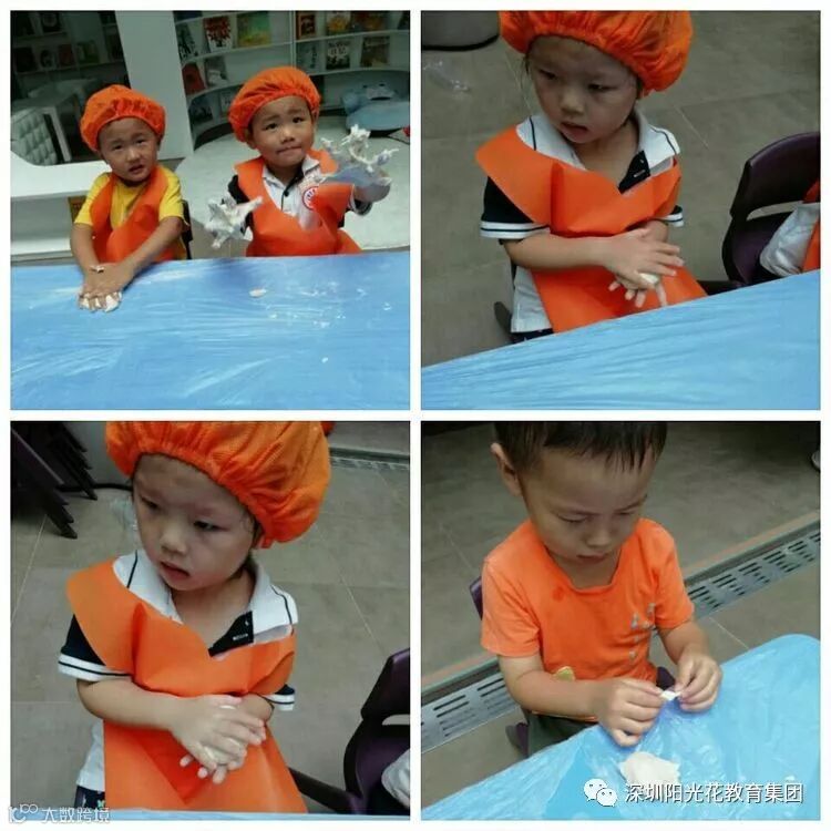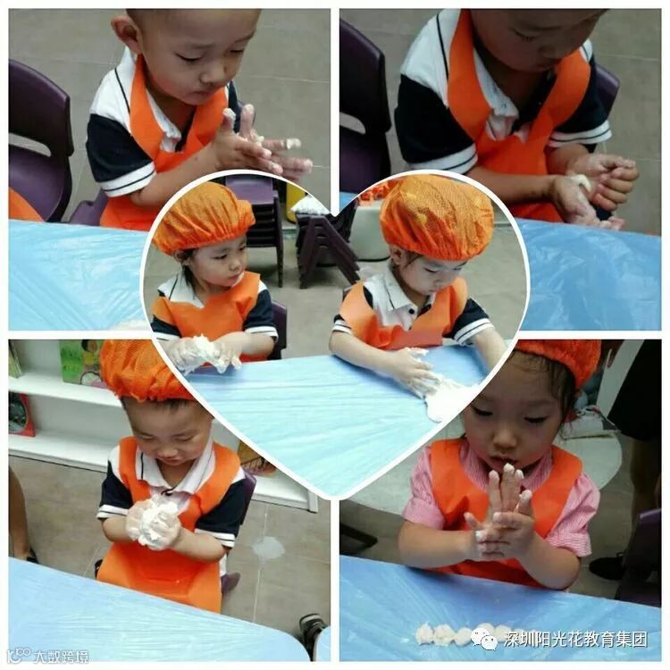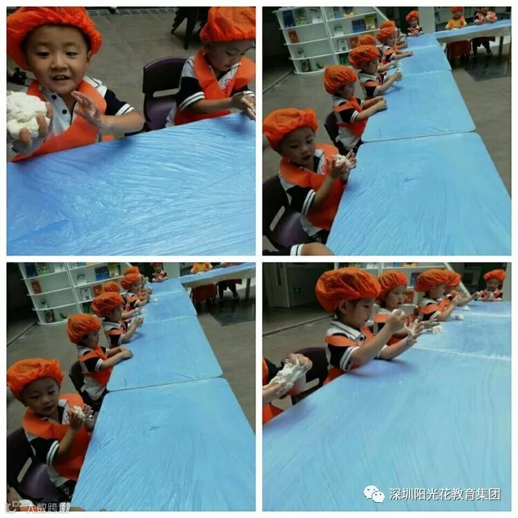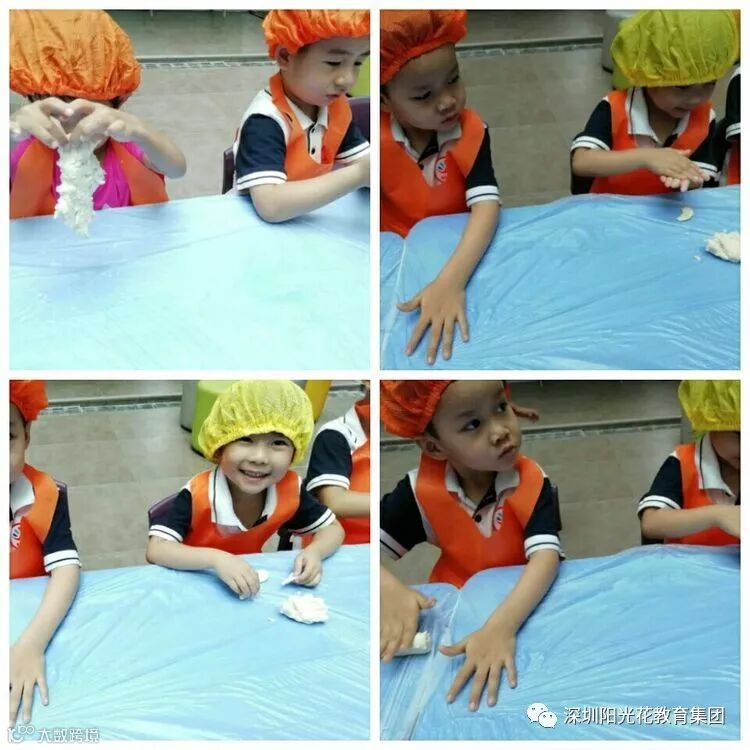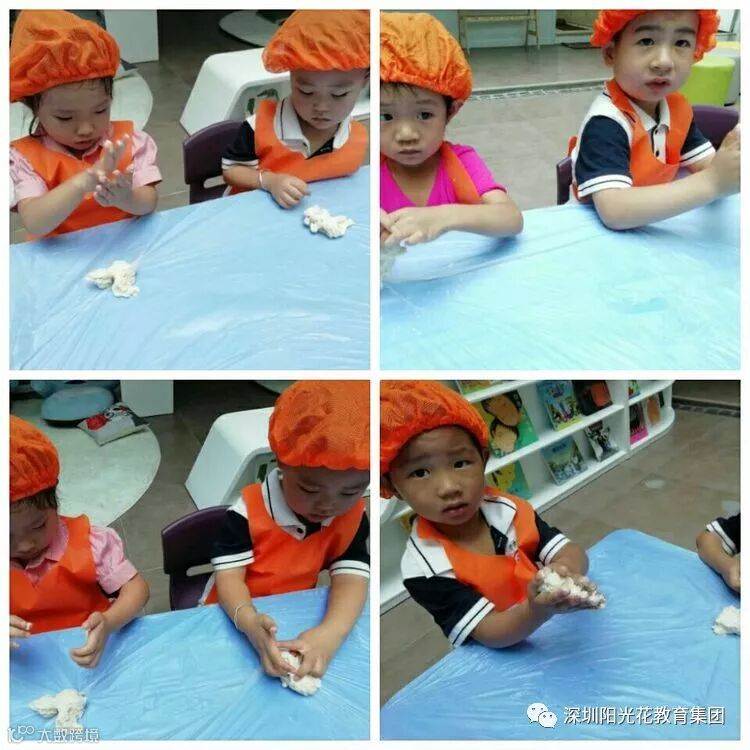 您们看,我们和面怎么样啊?虽然是第一次和面,可是我们也不赖哦…………