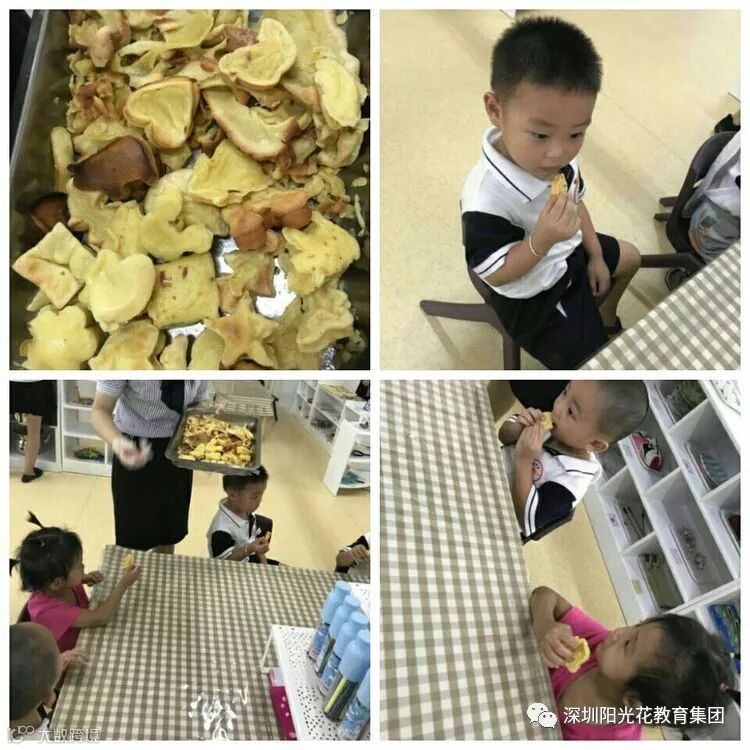幼:哇,老师,我闻到香味啦,是不是我们自己做的饼干烤好啦