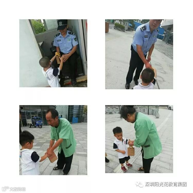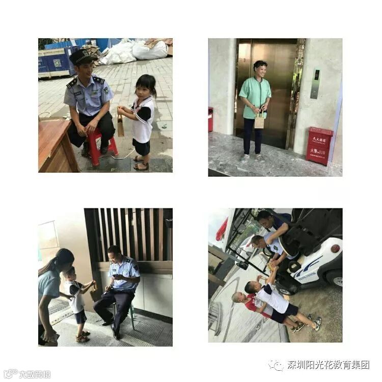 我们小朋友一个一个的把礼品袋送到我们在岗位的每一位叔叔阿姨们。