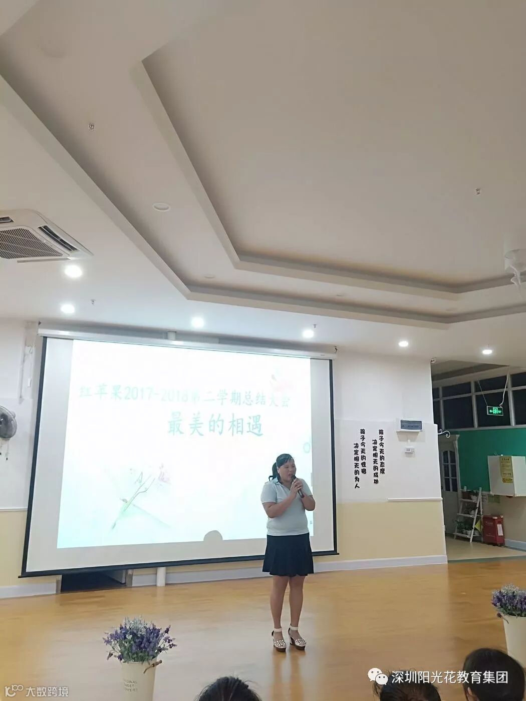 温园长用"感谢、感动、感恩"六个字总结了本次活动,同时告诫大家:面对成绩戒骄戒躁,不要忘了我们走近幼教最初的心。要将目光放在寻找自身不足上,取长补短,不断的完善自我。我们一定时刻准备好,准备迎接更多的机遇和挑战。 温园长代表全体行政人员向在坐所有老师表达谢意,感谢所有老师一直辛勤工作和对行政的支持。