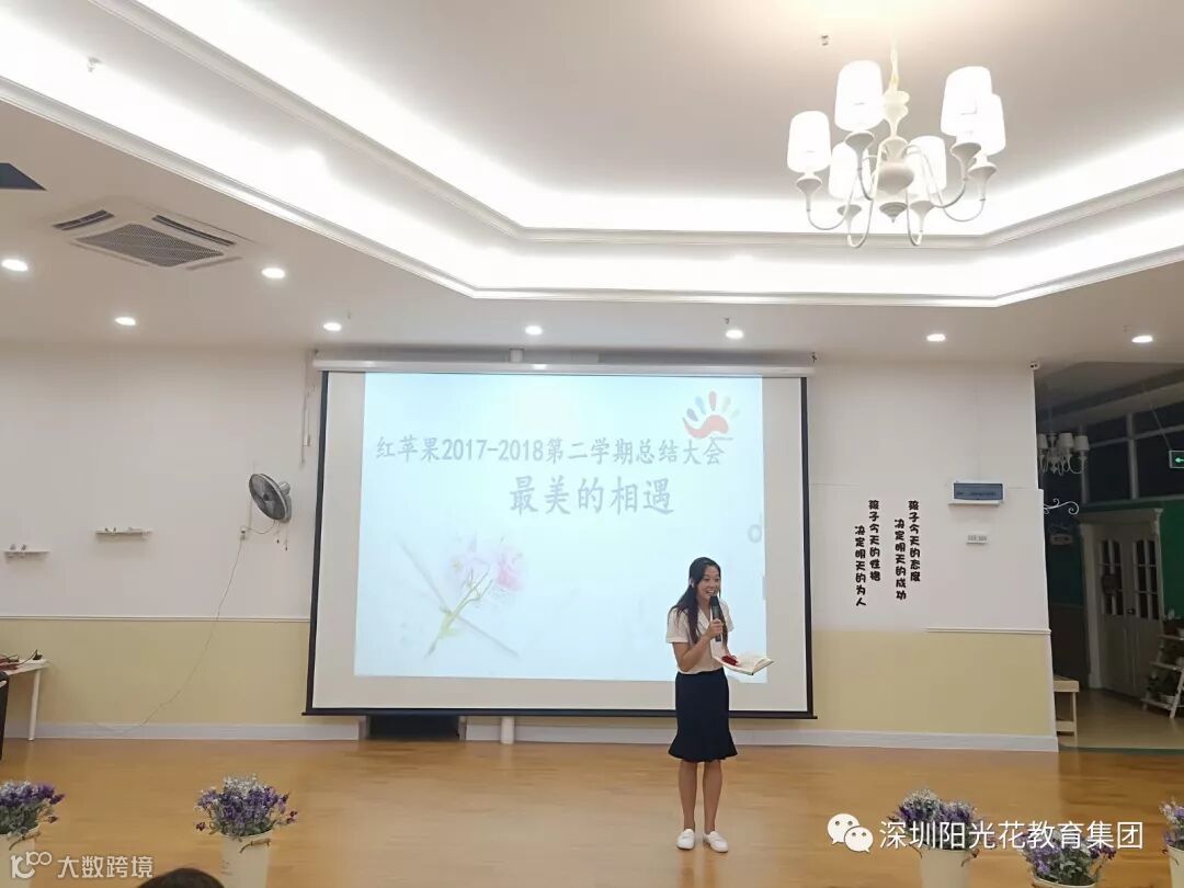 2018年7月10日,红苹果幼儿园全体家人们欢聚在一起,隆重举行了2017至2018学年第二学期期末总结及表彰大会。在这里,我们分享收获硕果的喜悦,憧憬来年的美景!由罗园长进行了一次全面的园务总结,并指出今后工作需努力的方向,同时对全体家人们表达了一份感谢,感谢所有的家人们对幼儿园工作的支持和辛勤付出!