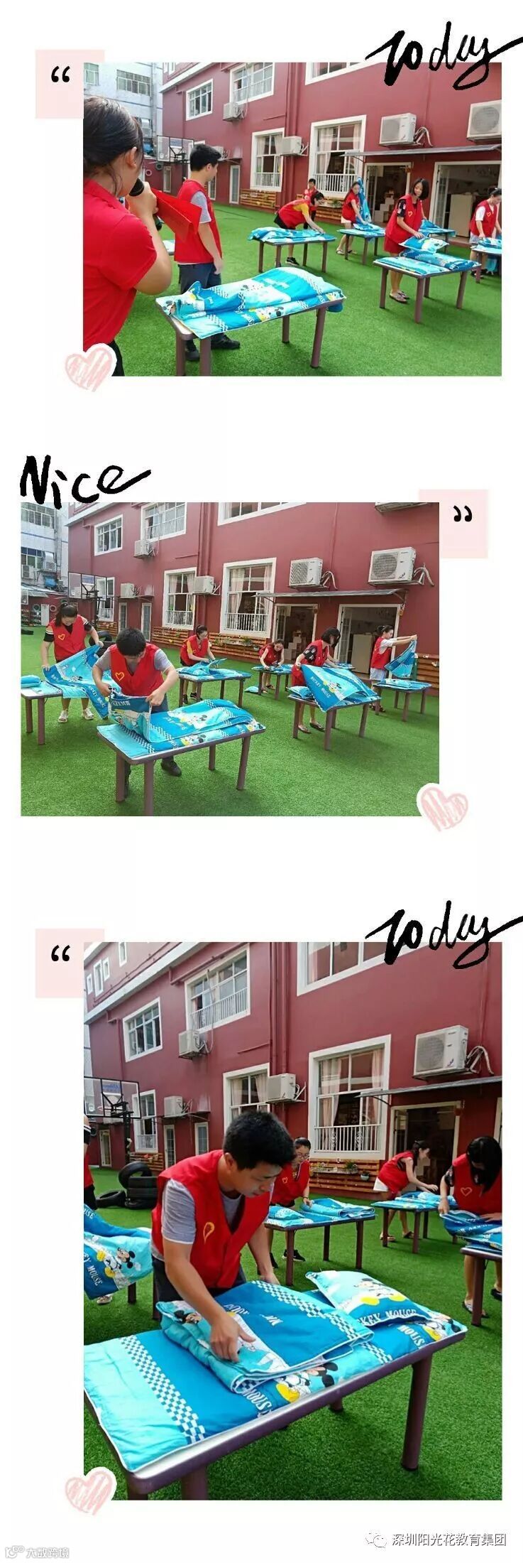 第一项:家长《叠被子》比赛;第二项是小朋友的《分玩具、叠毛巾、穿鞋子》比赛。每一轮比赛都是不同的小朋友参加。