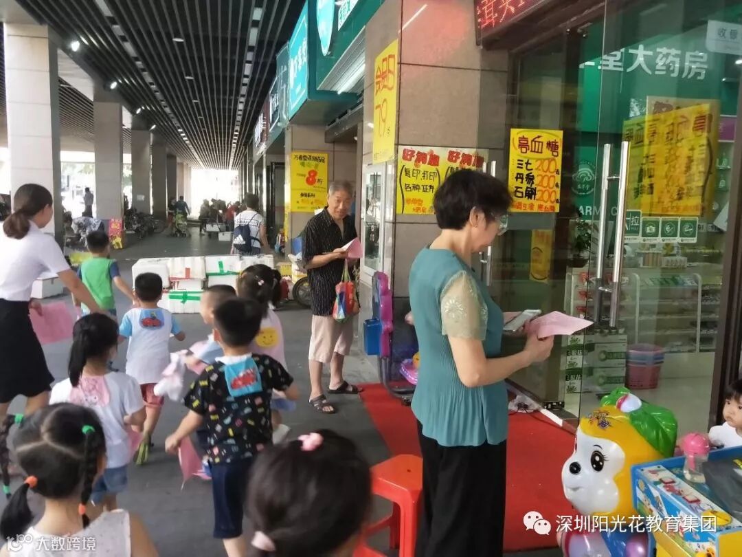 潮宝们带着学习到的新知识以及预防传染病的宣传单跟着西瓜姐姐,樱桃姐姐,葡萄姐姐以及三位老师出发啦!