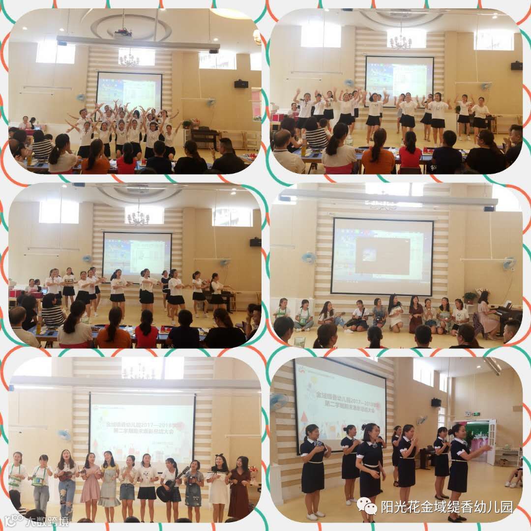 孔园的工作总结为我们打开了回忆之门,我们这学期其实做了很多事:晨谈教研、老师公开课、迎接汉松集团、区级开放、督导评估、小天使比赛、童画艺术比赛、区六一节目比赛、六一儿童节活动、毕业典礼、跳蚤市场爱心义卖、每月的主题活动、生日会等等,数不胜数!面对如此多的活动,在园长和各位行政领导的带领下,我们一群人,一条心,发挥每一个人的优势,把所有的活动做得有声有色、好评如潮,同时也是硕果累累,收获了很多的荣誉。所以,今天我们载歌载舞,共同庆祝。小、中、大班年级的老师们,保育老师们,后勤的叔叔阿姨们,行政领导们分别给大家带来了精彩表演,现场一度欢快高呼!