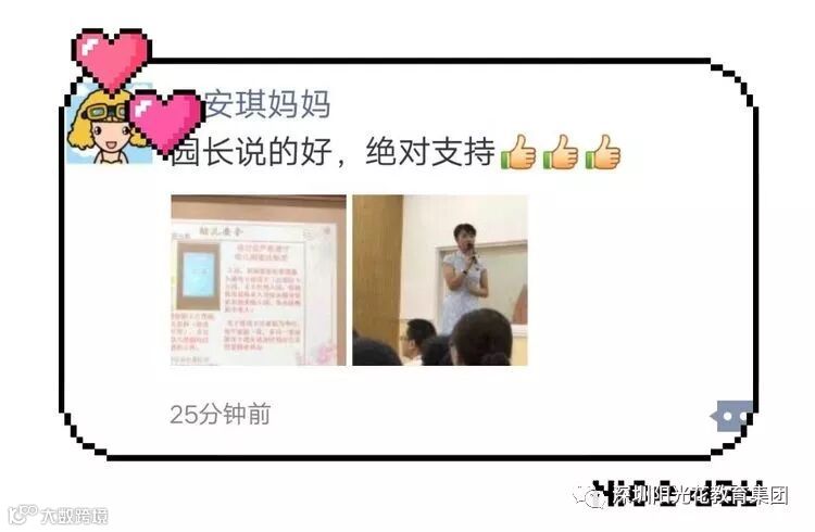 活动最后,家长们隆重宣誓 。 我坚信,天下没有不好的孩子。 我坚信,他的出生是为了磨练我。 我坚信,孩子是我的一面镜子。如果孩子表现的不够好,说明我的教育方法不够好。 我坚信,自己变得越好,孩子就会成长的越好。 我坚信,父母能够尊重理解孩子,孩子也能够尊重理解父母。 我要快乐!我要智慧!我要进步! 我一定要成为一位最好的、最棒的家长。