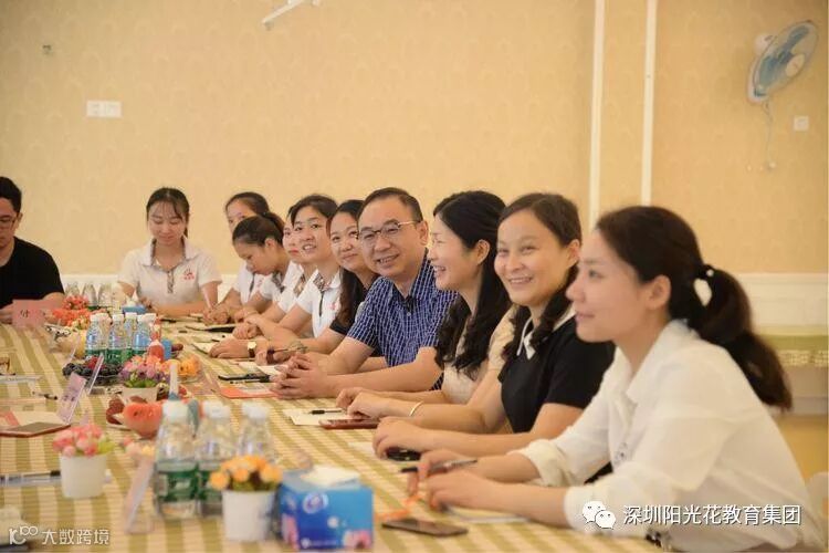 龙华区教科院综合部部长暨华南实验学校筹备组组长 江坚部长、龙华区学前教育教研员 甘露园长、华南实验学校筹备组成员 黄静臆和汪远成老师,深圳阳光花教育集团董事 王超先生、林丽清总园长、叶华总监、教科研部王赟部长及龙华区华南实验学校5位新老师参加了本次活动。