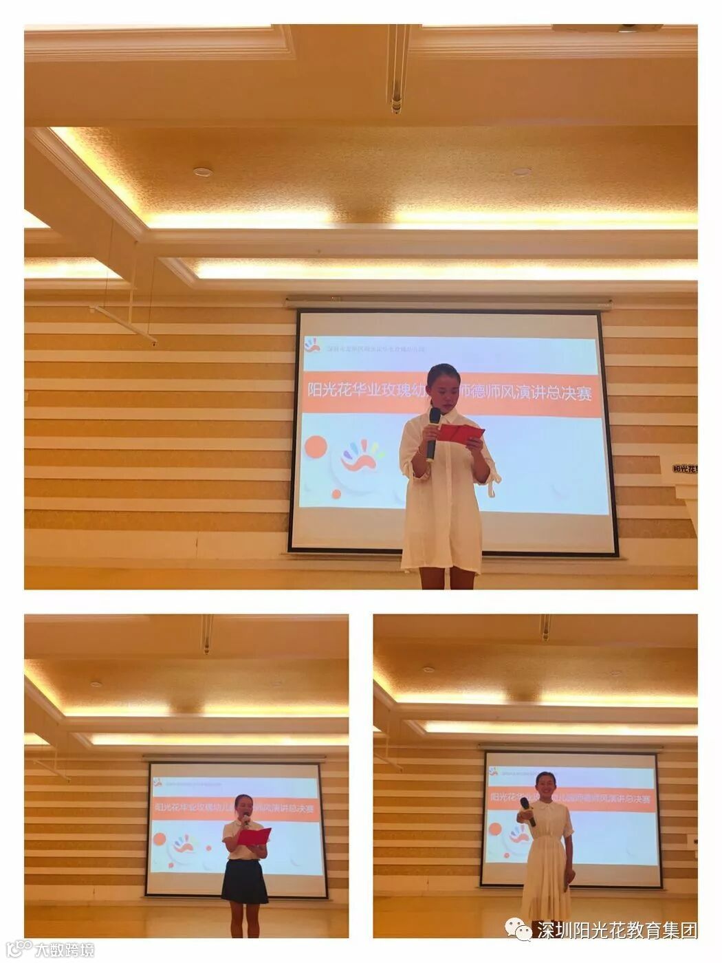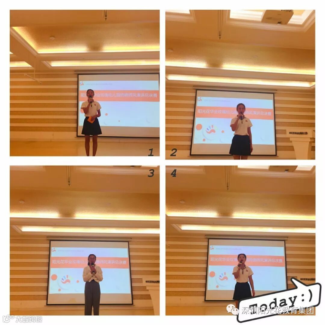 在这次的演讲比赛中,每个人都收获了太多太多。成功有大有小,但每一次的收获背后都跟随着千万努力的汗滴; 成功需要努力,只有辛勤地付出努力,你才能获得真正的成功!看着讲台上的选手,每一位都很有当老师的风采,由当初的羞涩,到现在的大方的站在众人面前。原来,改变,在我们不经意的瞬间。最后,感谢阳光花教育平台给我们展现自我的机会。