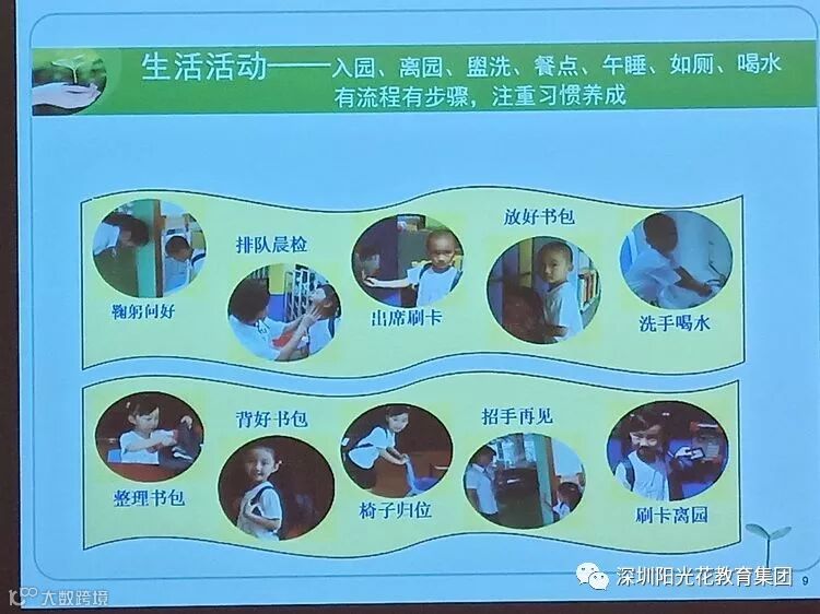 王赟部长指明了新学期各园教研培训主要方向以阳光花素养课程为主,阳光花素养是以《中国学生发展核心素养》的“核心素养”为方向,以幼儿为主体,通过一日活动的实施,让幼儿在“塑造健康行为”“适应社会生活”“善于表达交流”“积极探索环境”“感知美好事物”和“培养学习品质”六大素养方面得到提升,进而促进幼儿身心全面发展的学前教育课程。
