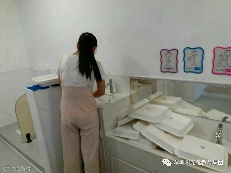用淡淡消毒粉水清洗区域盘子。