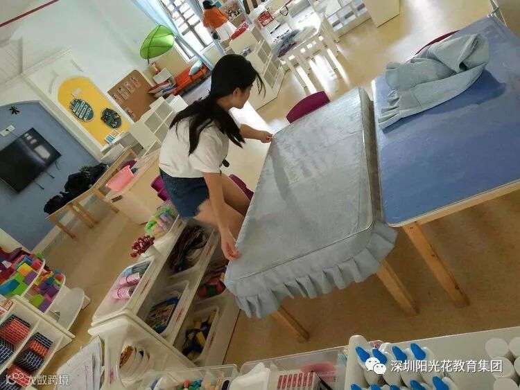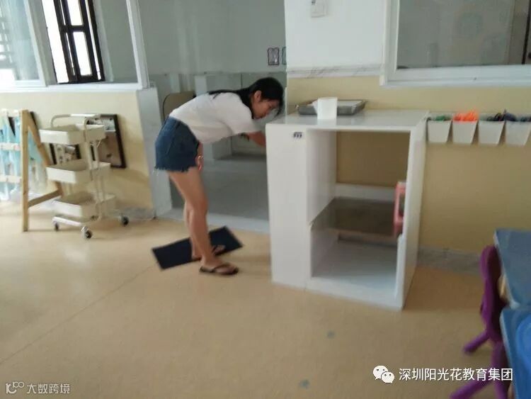 5月1日上午 老师们不辞辛苦利用休息时间早早的来到幼儿园进行对教室、厕所、户外等公共区域进行了打扫,并对水杯、毛巾、玩具进行了清洗与消毒,玩偶跟垫子进行暴晒。老师们不放过任何一个角落,里里外外都认认真真做了清洁。