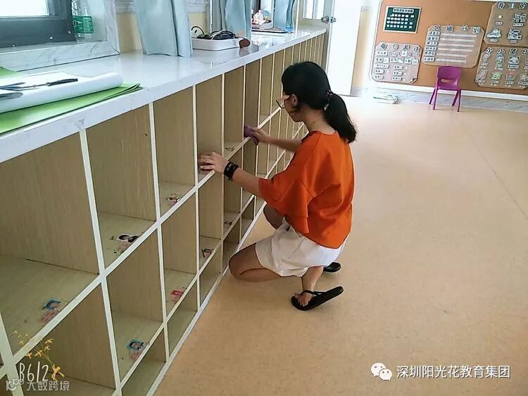 用淡淡消毒粉水擦拭书包柜。
