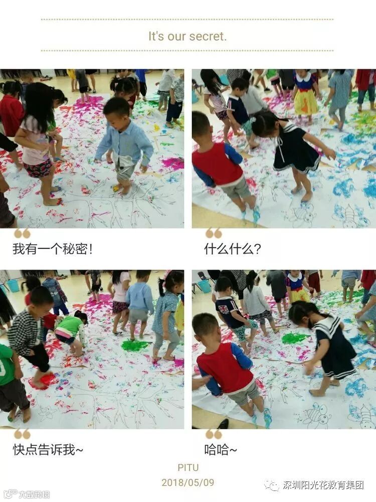 最后就是小朋友期待已久的艺术创想环节到啦!就是我们的《翻滚吧,小脚丫》艺术创想拓印,我们小朋友通过用脚去进行感知艺术不一样的美,享受艺术不一样的意境。