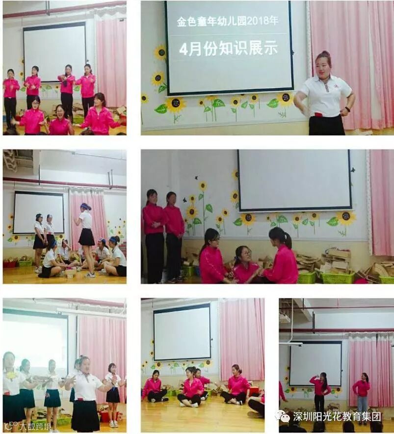 学习才能使我们不断的进步,每一次的展示都是一次成长的蜕变,今晚,阳光花金色童年幼儿园全体教师齐聚综合游戏室开展了《四月份知识展示活动》,在展示的过程中我们看到了每个年级组的进步,中班年级组充满活力,朝气蓬勃;小班年级组活泼可爱,正能量满满;大班年级组整齐划一,气势如虹;大大班组富有创意,稳步向前;而且在展示活动中我们看到了每位老师的用心付出,相信老师们在不断地展示中一定能够超越自己,勇于创新,一定能够做好孩子们成长路上的引路人!