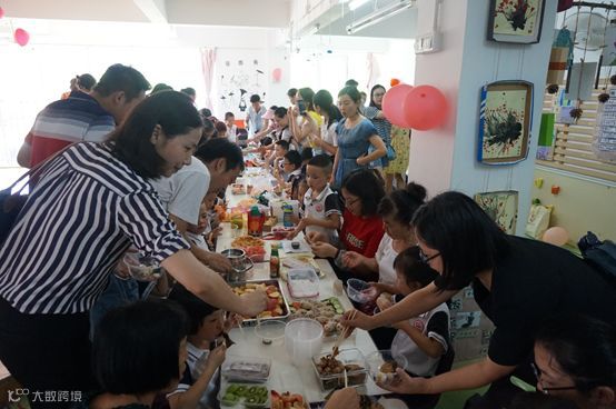 又到了大家最期待的美食分享会啦!爸爸妈妈爷爷奶奶们各显厨艺,纷纷拿出自己准备的拿手菜,和大家一起分享。瞧,宝贝们吃的多开心!