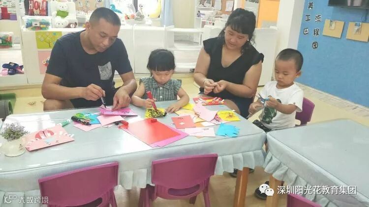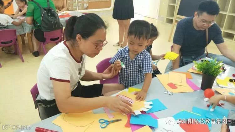 第四环节:手工制作。由冯老师讲解制作作品的顺序,家长与幼儿一起共同制作完成作品。