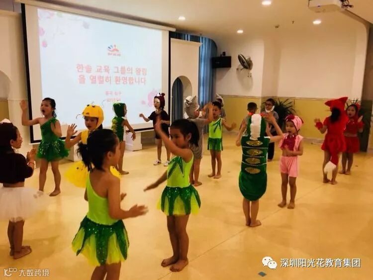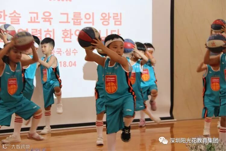 参观结束后,观看了阳光花教育集团大班幼儿节目童话剧《狐狸卖空气》、篮球操《小篮球,大梦想》以及教师节目快板《阳光花赞》,精彩的表演让韩国客人啧啧称赞。