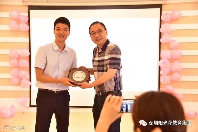 华南实验学校赠予深圳阳光花教育集团"梦想种子基地"牌匾,愿阳光花的孩子、老师、家长的梦想种子在这里生根发芽,茁壮成长。