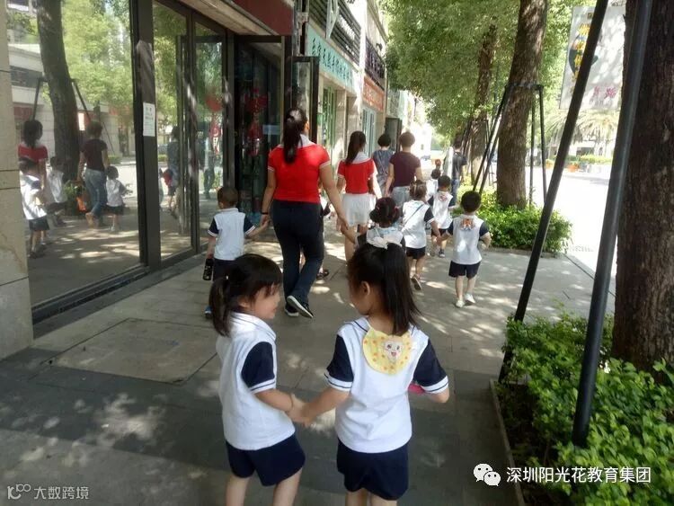 一路上,我们不怕太阳,不怕累,都是自己牵着阿姨,老师的小手,来到了求索艺术中心。