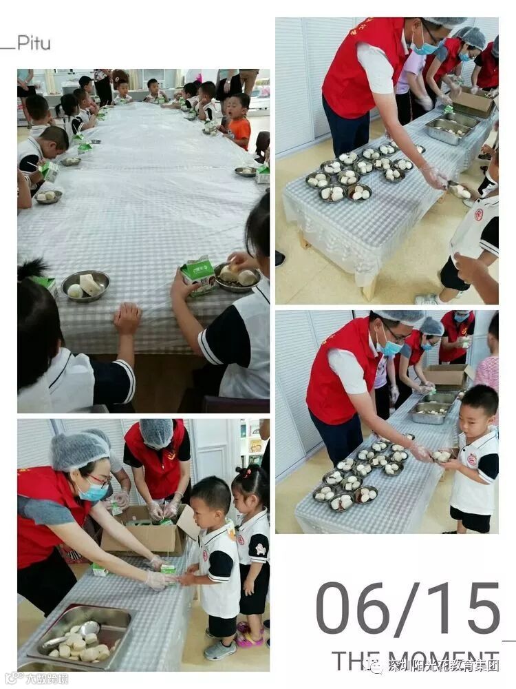 我们的叔叔阿姨再为我们的宝贝们分配早餐,您们看,今天我们吃鸡蛋,我们叔叔阿姨很用心将我们的鸡蛋壳都剥干净啦,然后也把我们的牛奶打开,谢谢叔叔阿姨这么用心;