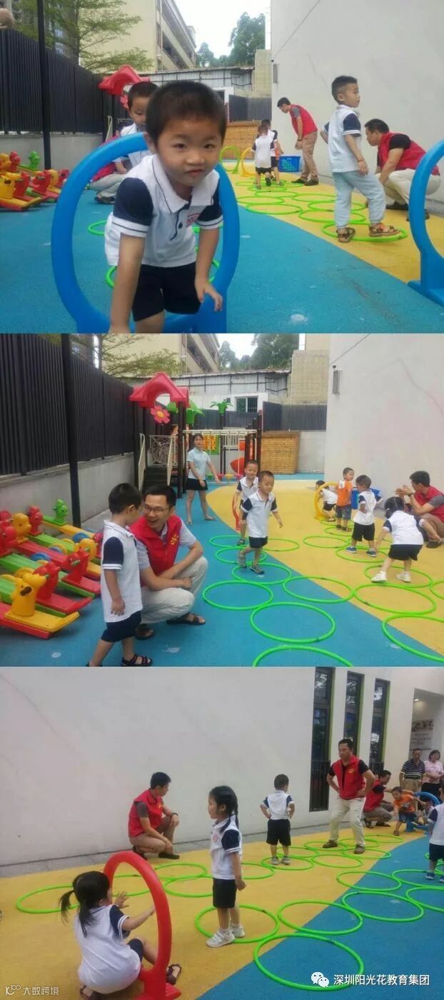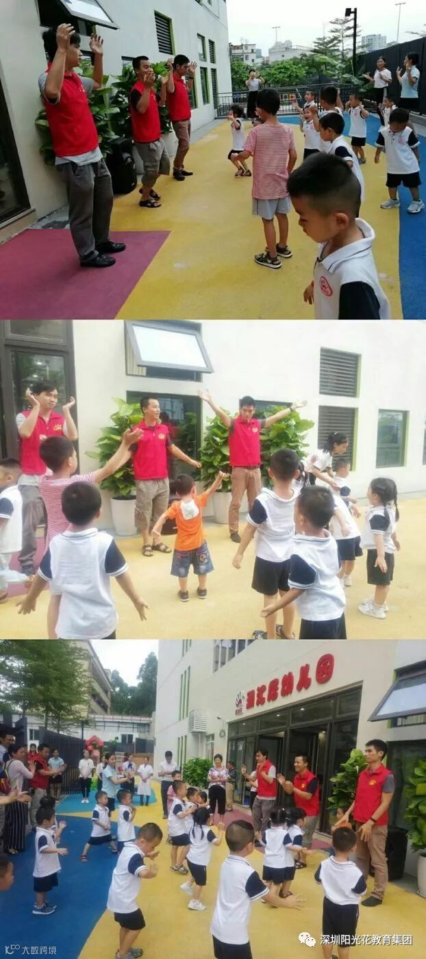 不错,您们没有看错,今天的早操活动是我们的爸爸们带着我们的宝贝进行,从刚刚开始的拘谨,到后面跟着我们的音乐跳得越来越嗨,连我们的小朋友都在为我们的爸爸加油!
