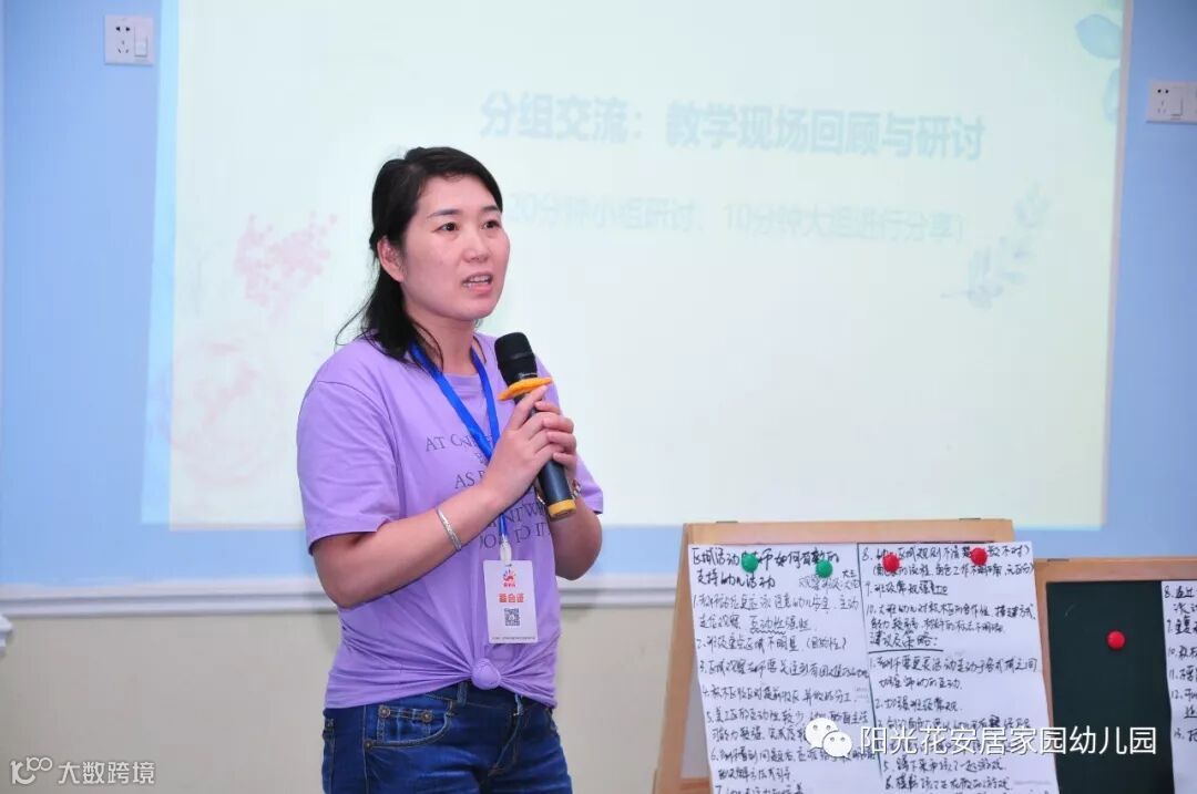 在本次教研活动指导老师:陈燕玉园长、麦荣珊园长的带领下,现场进行了分组研讨活动,大家积极参与,发现问题,提出策略,为我园的区域活动开展提出了宝贵的建议。