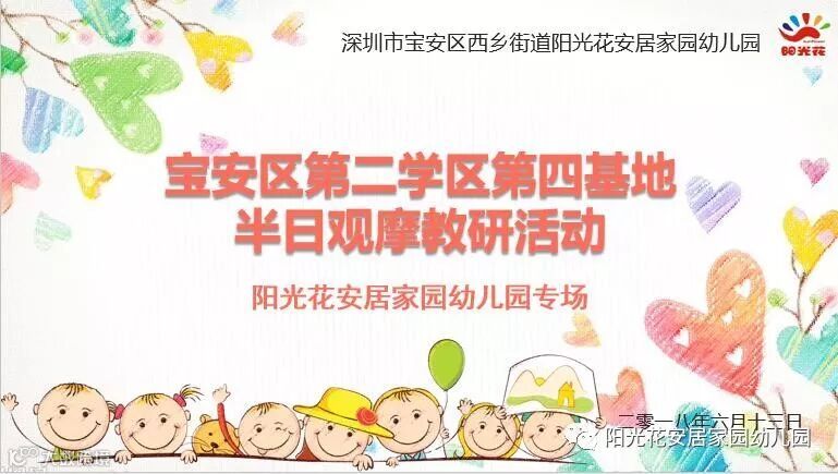 2018年6月13日,是一个激动人心,满怀感恩的日子,宝安区第二学区第四基地半日观摩集体教研活动在阳光花安居家园幼儿园如期举行。参加本次教研活动的人员有: