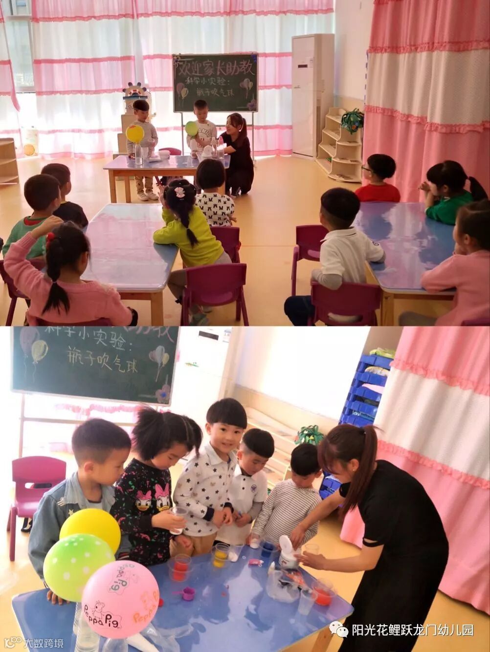 大一班家长带来了科学实验《有趣的气球》《溶解》,妈妈们使出浑身解数,小小的科学实验玩出了不一样的乐趣。