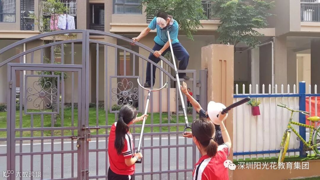 小朋友边躲边说着,“老师,坏人来了”、“我们老师和保卫叔叔一定会保护好我们的”……
