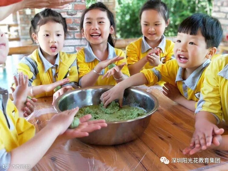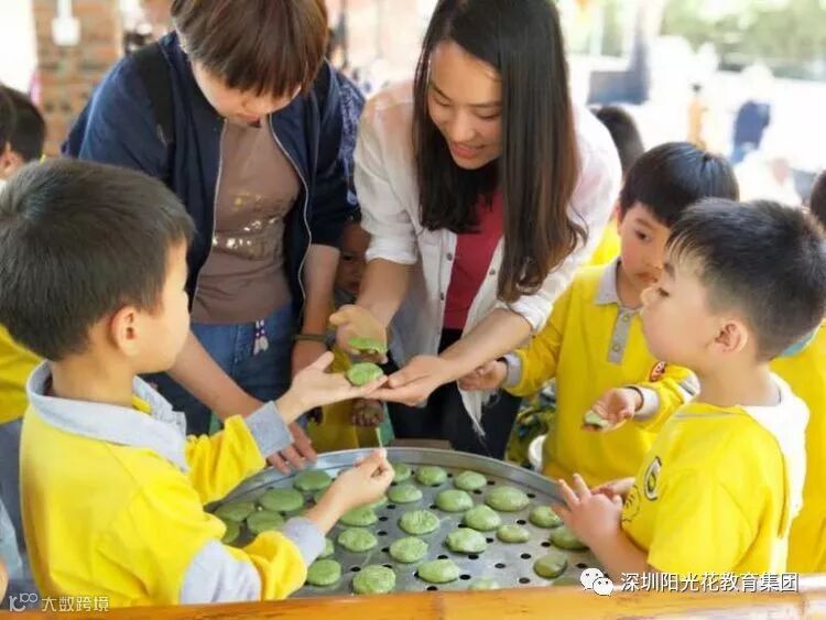老师和家长们将清洗干净的艾叶放入锅中煮沸。
