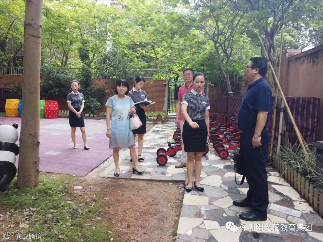 2018年6月13日上午阳光花领航城幼儿园迎来了宝安区教育科学研究院杨涛主任、宝安区教科培中心秦义老师和甘露老师莅临我园进行室内外环境一体化的检查指导工作。