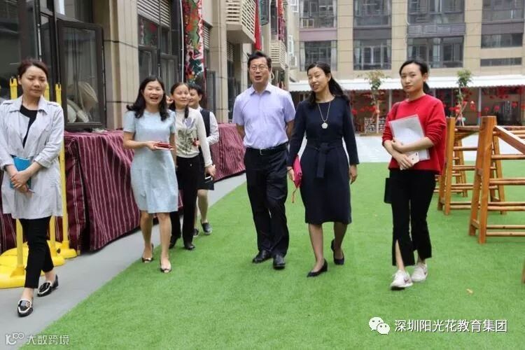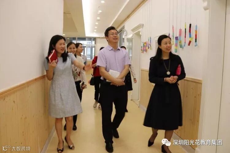 龙华区教育局段副局长一行,在深圳阳光花教育集团林丽清总园长,叶华教育总监,王赟教研部长,梁丽莎主任,及中海锦城幼儿园行政的陪同下,巡视了幼儿园环境。