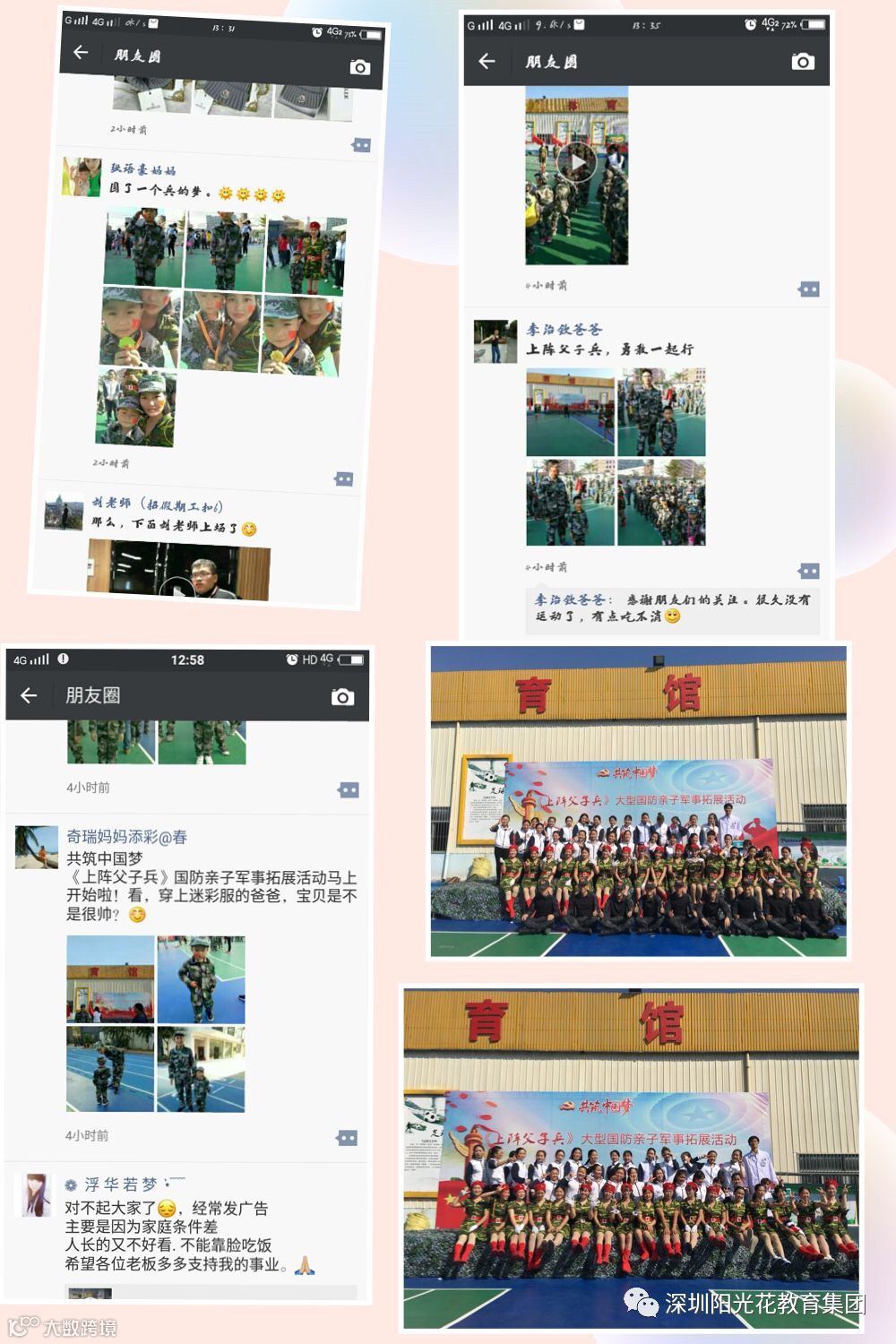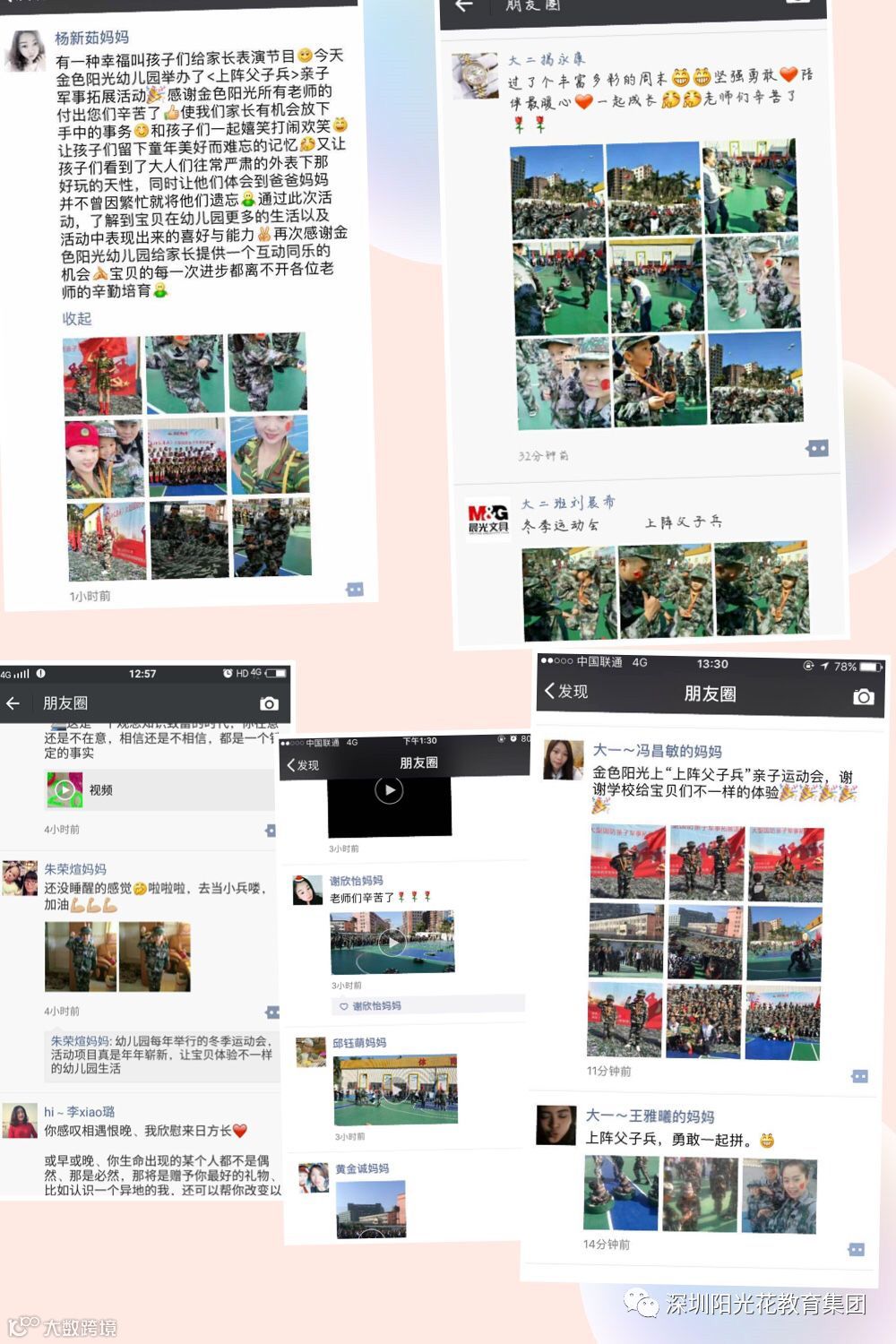 为了培养孩子的爱国思想,锻炼孩子的意志,阳光花深圳总部金色阳光幼儿园与专业的拓展公司深圳开拓者幼儿体能公司合作,举行了《上阵父子兵》大型国防亲子军事拓展活动。首先是活泼、美丽大方的老师和家长朋友们带来精彩的《潇洒女兵》为我们军事拓展活动拉开了序幕。本次活动以“上阵父子兵、勇敢一起拼;上阵父子兵、中国我最行”为口号,目的是对小朋友们进行国防启蒙教育,萌发幼儿爱国情感,增强父子之间的感情。随后,在体智能老师的带领下,“父子”齐上阵,家长与孩子积极投入到军事游戏活动中,《打探敌情》《运送物资》《全速前进》《世界大战》,亲子游戏中,家长与宝贝体现了不怕困难,勇往直前,坚持不懈,团结合作的精神,同时也是欢声笑语的完成一项项任务。在感恩情节中,宝贝们唱着《父亲》,声音虽稚嫩,但感情真挚,浓浓的温情感染了在场每一个人,最后由最激动人心的颁奖环节结束了活动。活动结束后,家长们纷纷表示,这次以军事为主题的亲子活动很有意义,在活动中锻炼了孩子们体质,增进了父子间的感情,促进了孩子身心健康发展,更培养了孩子爱国意识,赢得了家长朋友们的高度评价。