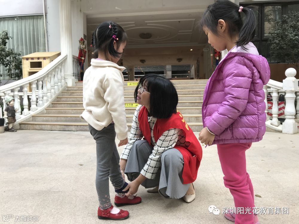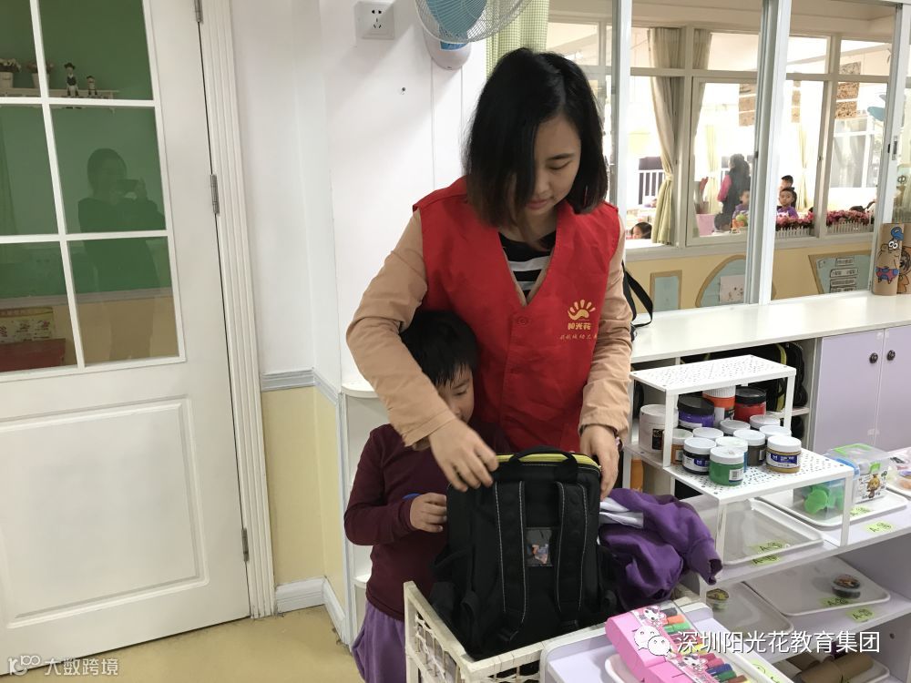 这位小朋友哭了,助教老师安慰她还帮她整理衣物。