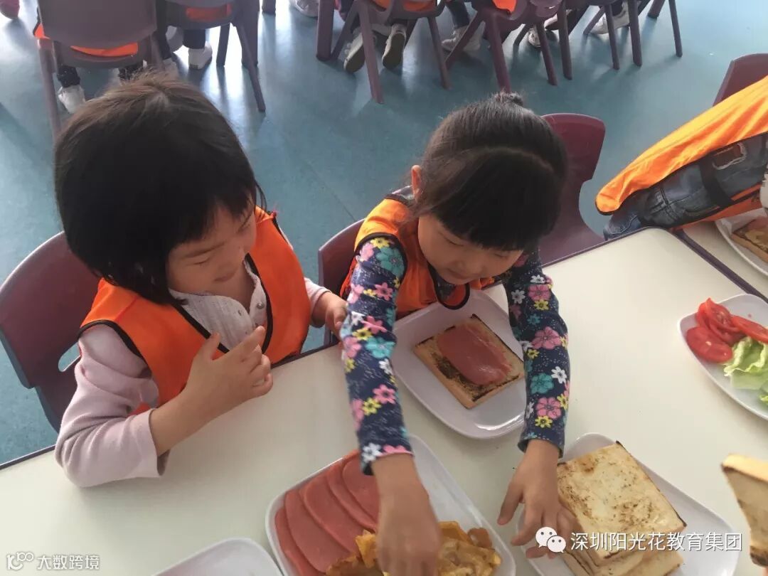 阳光潮童“SHOW”栏目开课啦!为了培养潮宝们的动手能力以及手指协调能力。培养同伴之间的协作能力,体验合作的快乐。2018年4月4日上午,阳光花安居家园幼儿园阳光潮童“SHOW”栏目开展了“巧手DIY—好吃的三明治”主题活动。
